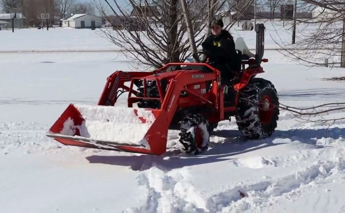 Make sure the tractor is on level ground when attaching the snow pusher.